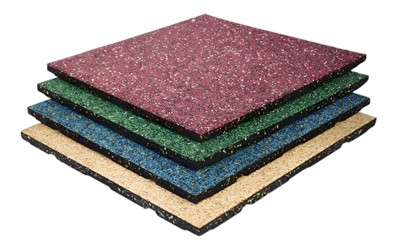 Our composite rubber flooring tiles are made of durable EPDM rubber sheets and high-quality rubber granules. Available in multiple thicknesses (1.5–3 cm) and sizes (50×50 cm, 100×100 cm), with interlocking or snap-on installation.